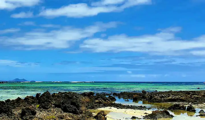 Die Villa befindet sich im Nordosten der Insel auf einem sehr grossen Grundstück am Rande einer kleinen Siedlung mit direktem Blick auf den Atlantik, der in nur fünf Minuten zu Fuss zu erreichen ist. Es gibt dort eine kleine Minibucht zum Schwimmen. Bei ruhigem Meer kann man auch von den Felsen aus direkt ins Wasser steigen, was bei starkem Wellengang allerdings nicht empfohlen ist.